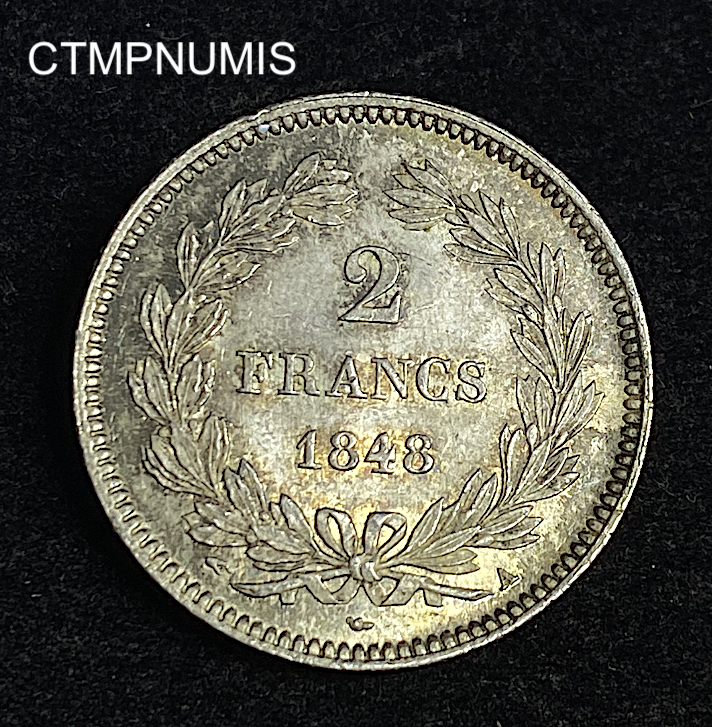 MONNAIE ROYALE 2 FRANCS ARGENT LOUIS PHILIPPE I° 1848 A PARIS SUP+