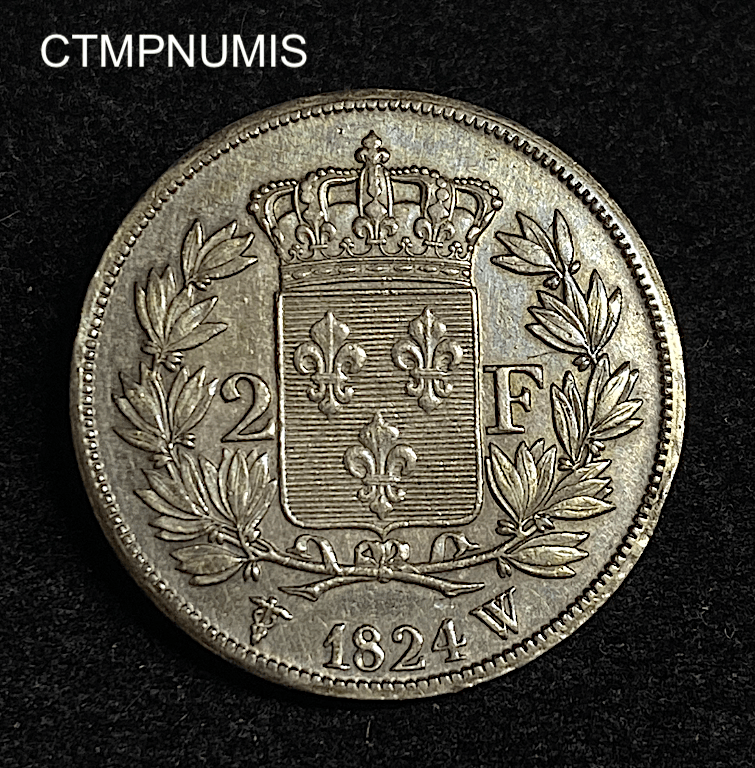 MONNAIE ROYALE 2 FRANCS ARGENT LOUIS XVIII 1824 W LILLE SUP