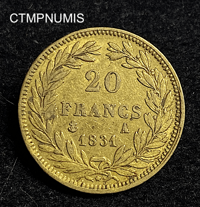 MONNAIE ROYALE 20 FRANCS OR LOUIS PHILIPPE 1831 A PARIS TRANCHE EN CREUX