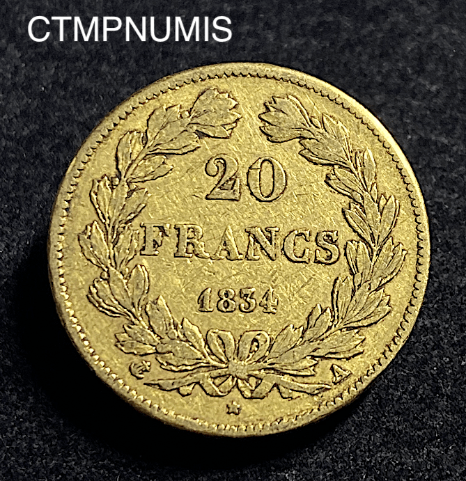MONNAIE ROYALE 20 FRANCS OR LOUIS PHILIPPE I° 1834 A PARIS