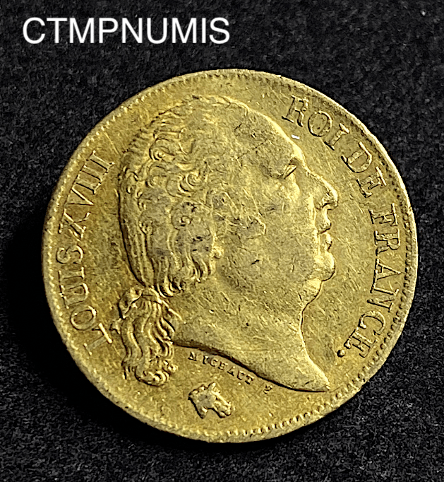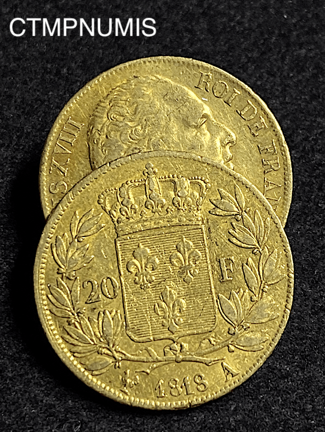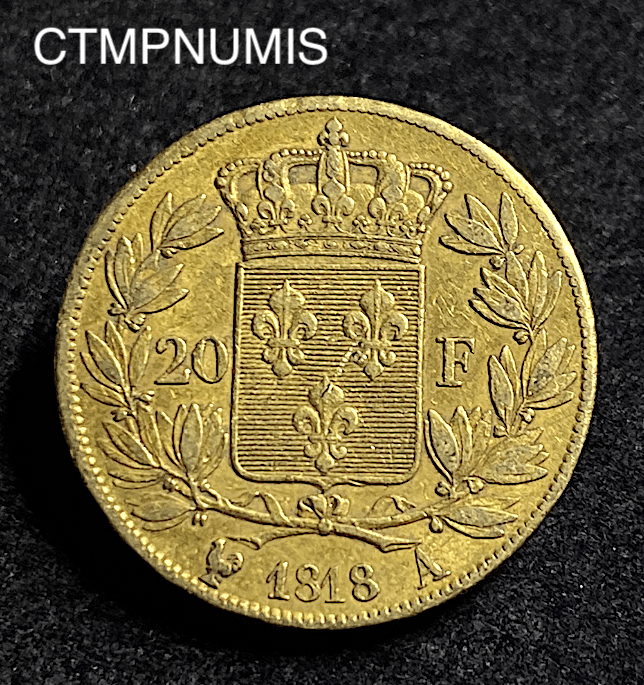 MONNAIE ROYALE 20 FRANCS OR LOUIS XVIII 1818 A PARIS