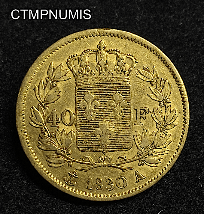 MONNAIE ROYALE 40 FRANCS OR CHARLES X 1830 A PARIS