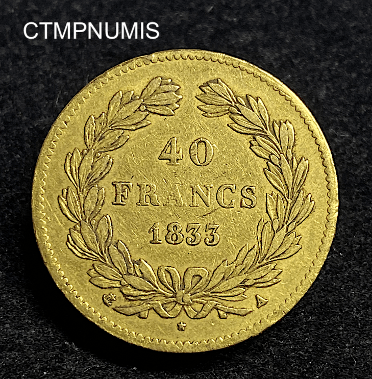 MONNAIE ROYALE 40 FRANCS OR LOUIS PHILIPPE I° 1833 A PARIS