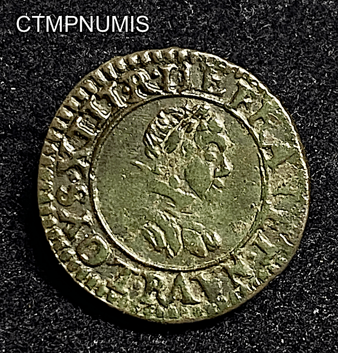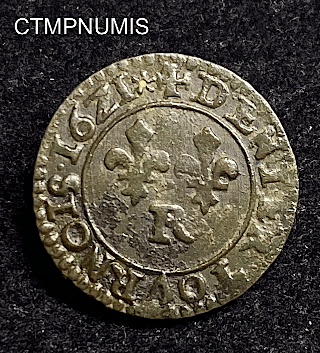 MONNAIE ROYALE LOUIS XIII DENIER TOURNOIS 1621 R VILLENEUVE TTB