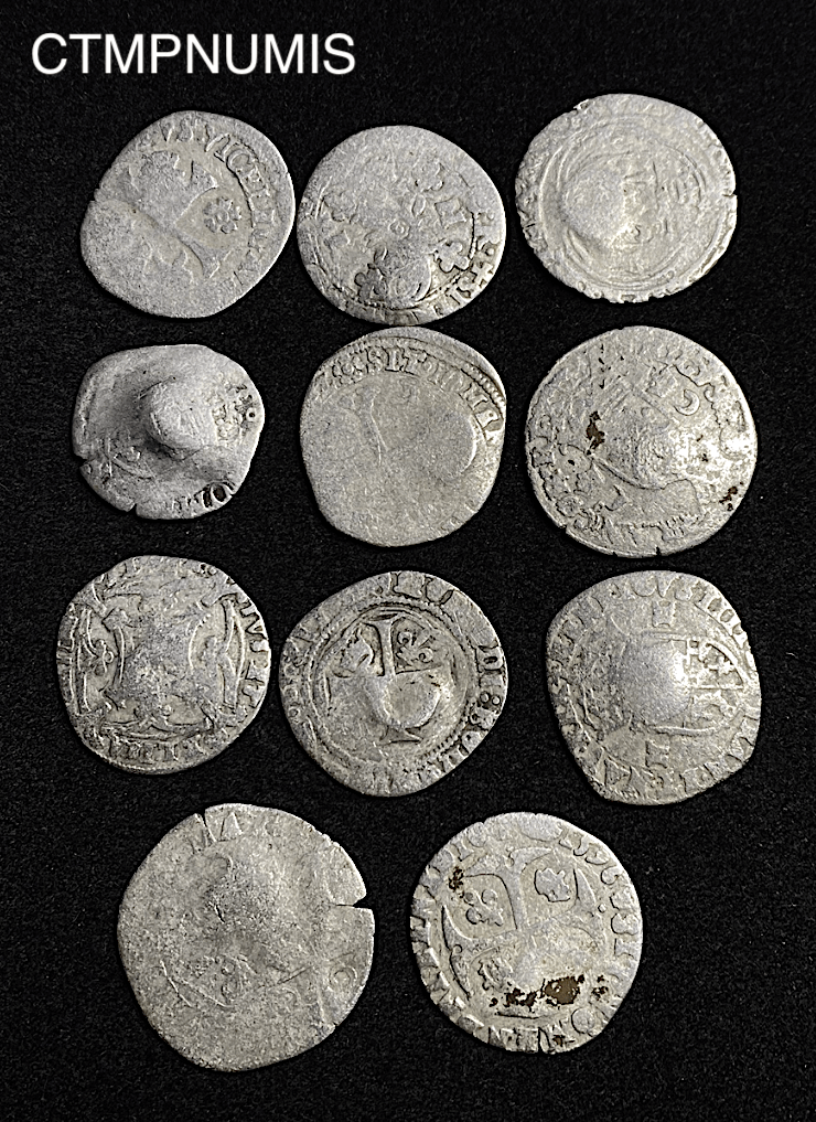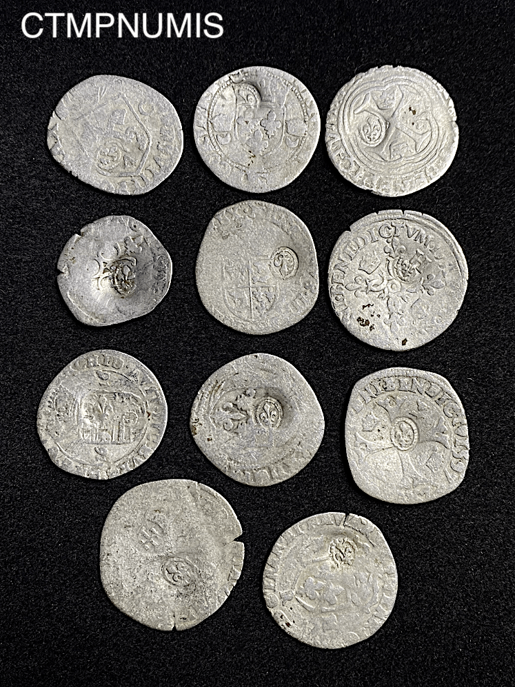 MONNAIE ROYALE LOUIS XIII QUINZAIN CONTREMARQUE AU LIS DIFFERENTS SUPPORTS LOT DE 11 EXEMPLAIRES