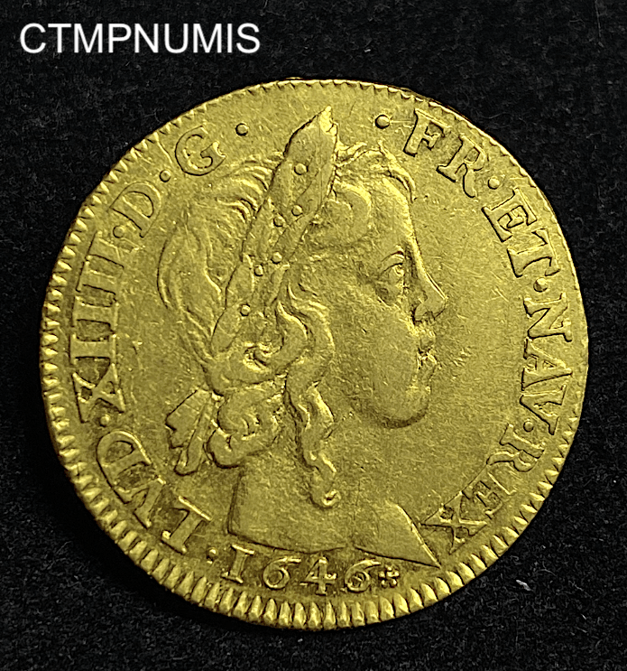 • ,MONNAIE,LOUIS,XIV,LOUIS,OR,MECHE,LONGUE,1646,B,ROUEN, MONNAIE ROYALE LOUIS XIV LOUIS D'OR A LA MECHE LONGUE 1646 B ROUEN FRAPPE MEDAILLE 2,500.00€