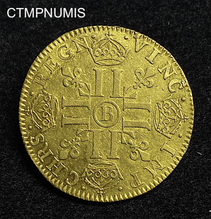 Catégories : Françaises, Louis XIV (1643-1715), Monnaies, Or, Royales Françaises Étiquettes : 1646, B, LONGUE, LOUIS, MECHE, MONNAIE, OR, ROUEN, XIV