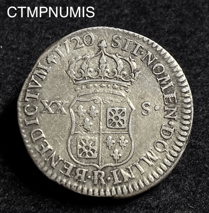 MONNAIE ROYALE XX SOLS ARGENT LOUIS XV 1720 R ORLEANS