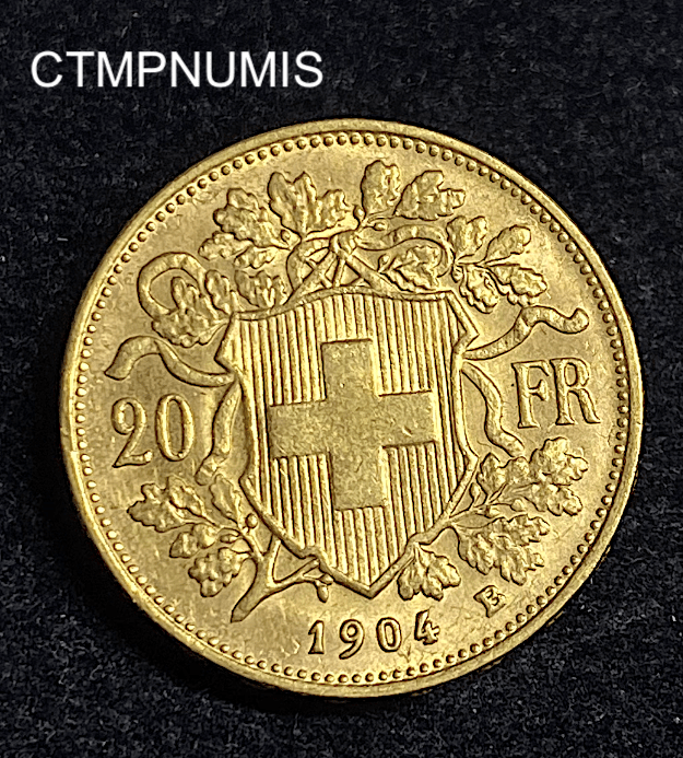 MONNAIE SUISSE 20 FRANCS OR VRENELI 1904