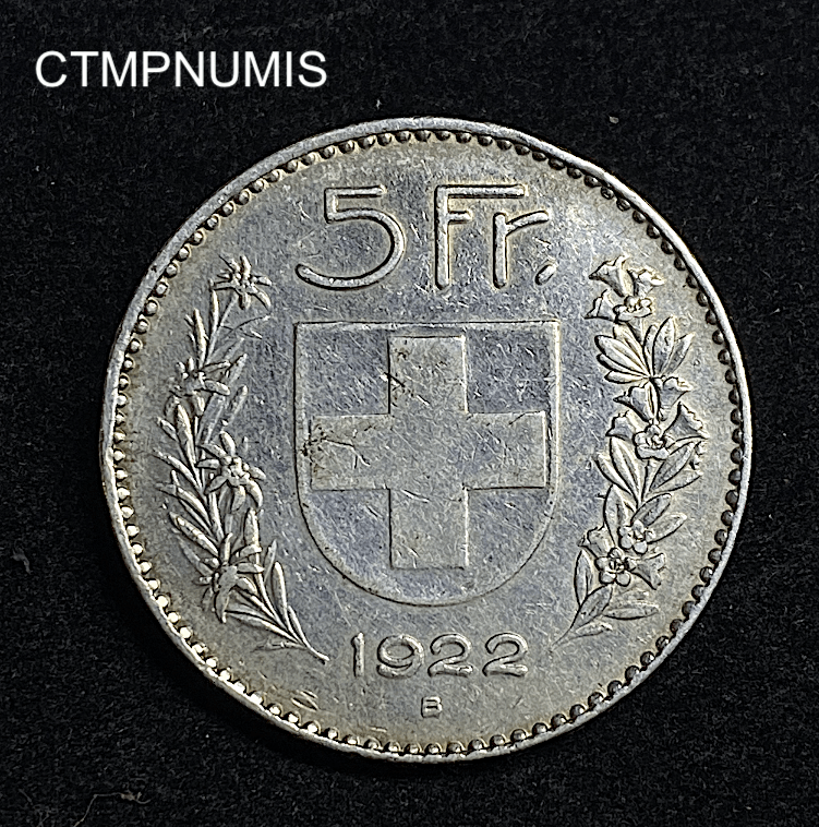 Catégories : Argent, Europe, Monde, Monnaies, Suisse Étiquettes : 1922, 5, argent, BERNE, FRANCS, MONNAIE, SUISSE
