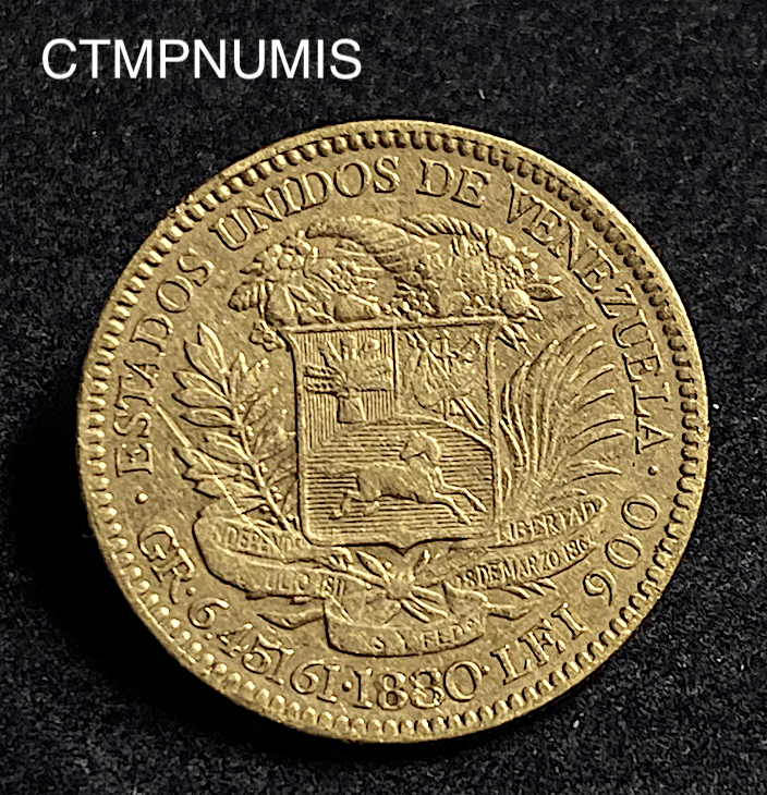 • ,MONNAIE,VENEZUELA,20,BOLIVARES,1880,OR, MONNAIE VENEZUELA 20 BOLIVARES OR BOLIVAR 1880 680.00€